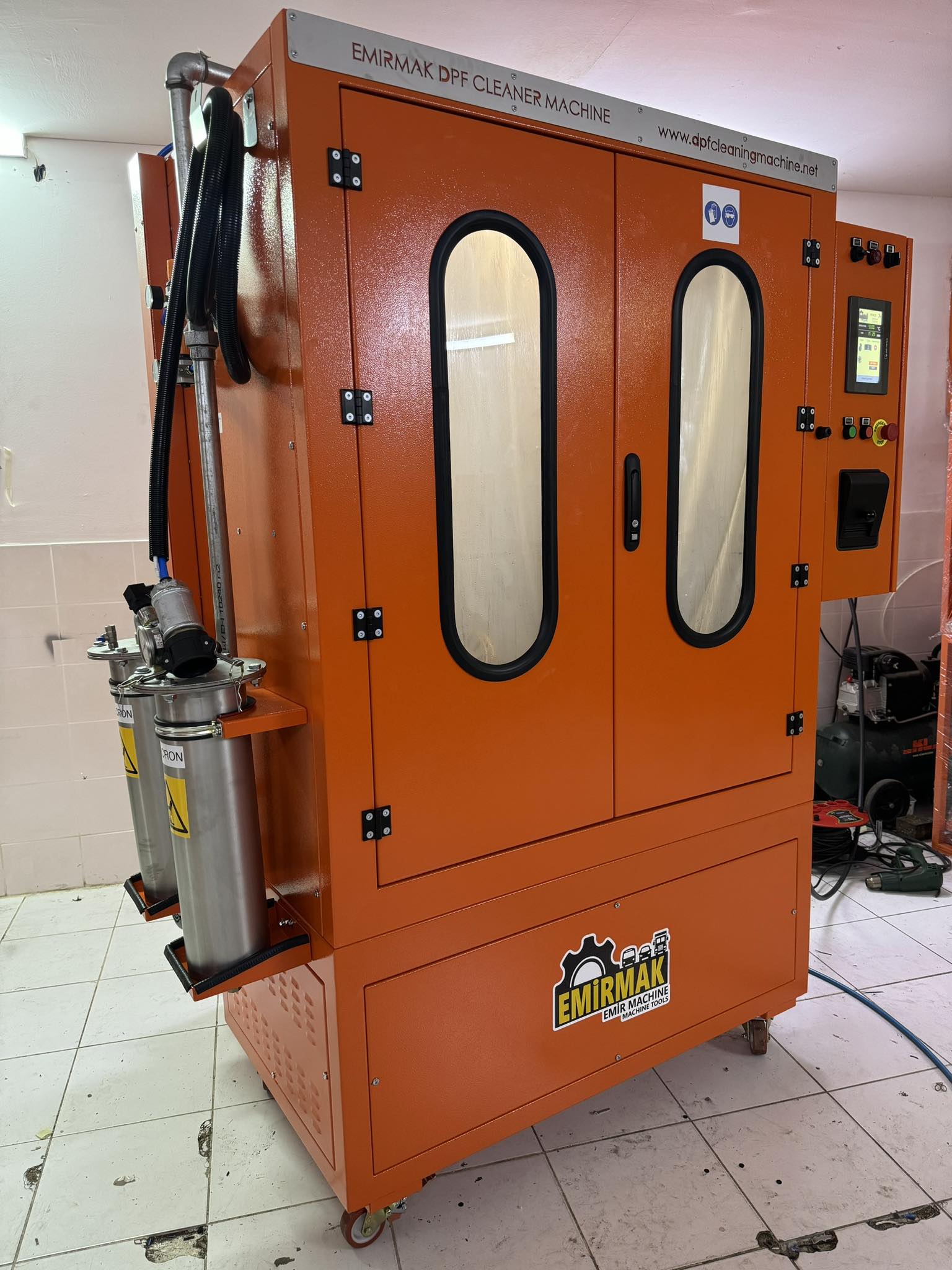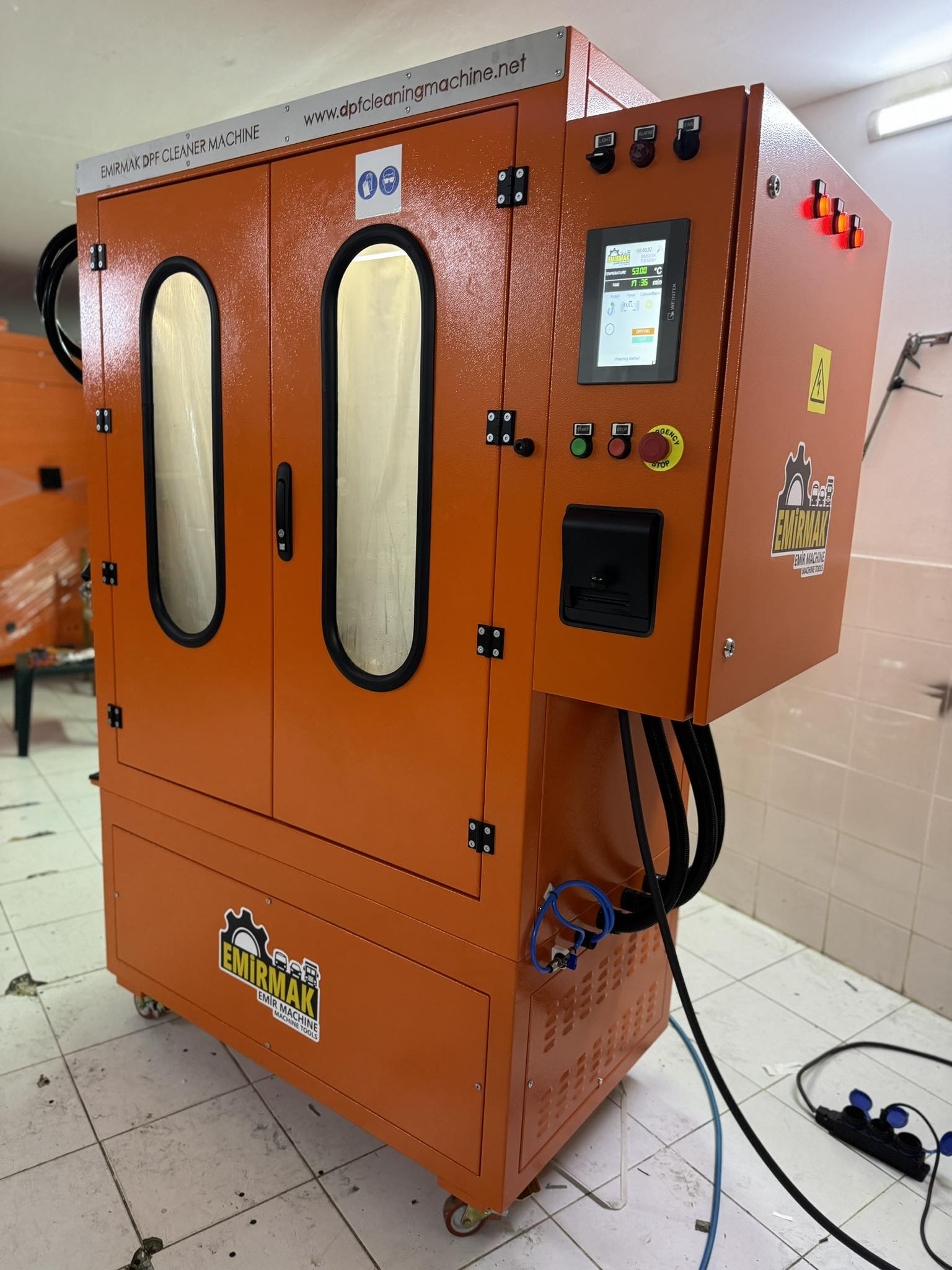 Nuestra máquina deja casi ningún trabajo para el operador. Tiene muchos aparatos de conexión para DPF y catalizadores, y el uso del aparato es muy simple. Puedes iniciar un programa de limpieza DPF con un solo toque desde el panel de control y completar todos los procesos automáticamente. Esta máquina puede limpiar todos los DPF y catalizadores que quepan dentro de ella (incluidos vehículos pesados).