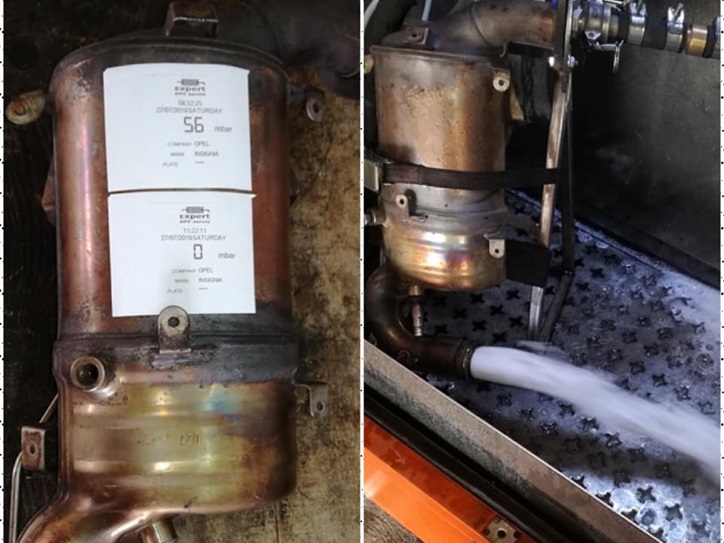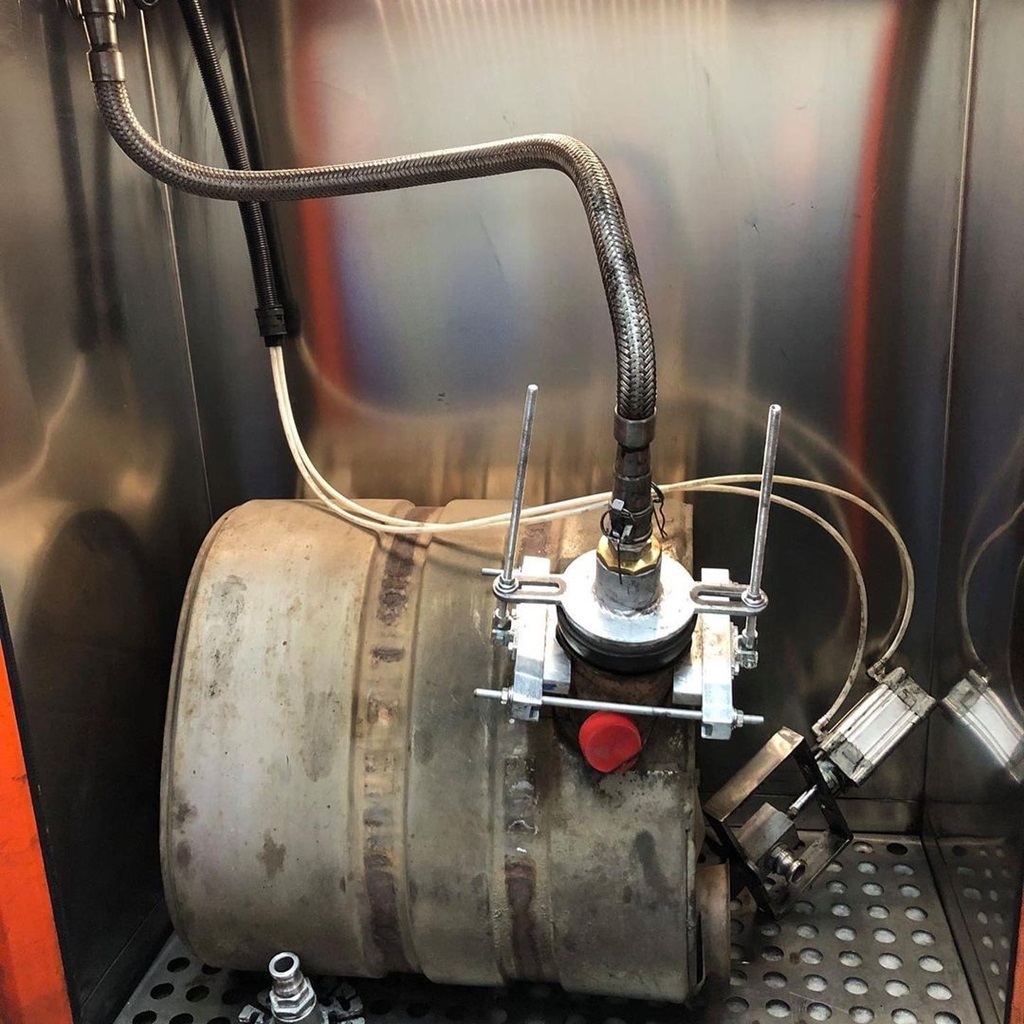 Con la limpieza neumática, se limpian las cenizas en el DPF y se prepara para el lavado hidrodinámico y catalítico. El tanque de agua caliente y choque de aire crea un efecto hidrodinámico. Puedes limpiar con agua caliente o fría. Nuestra empresa recomienda limpiar con agua caliente a 50°C. Un mínimo de 15 toneladas de agua por hora es bombeada al DPF por su bomba especial, que completa fácilmente la limpieza del DPF.
