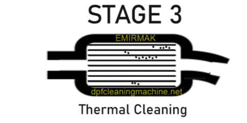 Con el método de limpieza térmica EMIRMAK, se aplica aire caliente de alto flujo en el DPF. Este aire caliente está alrededor de 120-250°C y es la etapa final de limpieza. Seca el DPF después de la limpieza hidrodinámica y limpia la suciedad. En el método de limpieza térmica DPF conocido en el mercado, se utilizan hornos de muy alta temperatura porque la limpieza térmica generalmente se aplica sola, por lo que se usan hornos con temperaturas de hasta 1200°C. Este método es insuficiente cuando se usa solo y requiere esperar mucho tiempo para el calentamiento y enfriamiento. No es posible el servicio el mismo día. Además, puede causar grietas en el DPF debido al calentamiento y enfriamiento.
