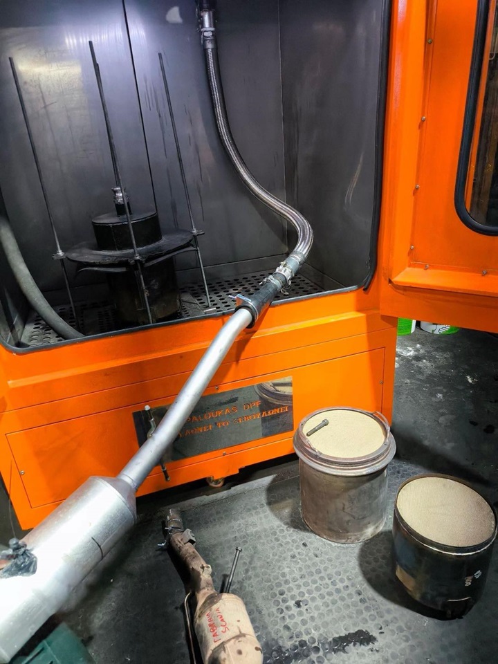 Nuestra máquina deja casi ningún trabajo para el operador. Tiene muchos aparatos de conexión para DPF y catalizadores y el uso del aparato es muy simple. Puedes iniciar un programa de limpieza DPF con un solo toque desde el panel de control y completar todos los procesos automáticamente. Esta máquina puede limpiar todos los DPF y catalizadores (incluidos vehículos pesados, autobuses, camiones, excavadoras, etc.).