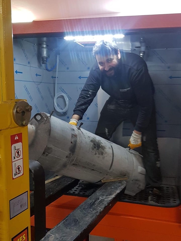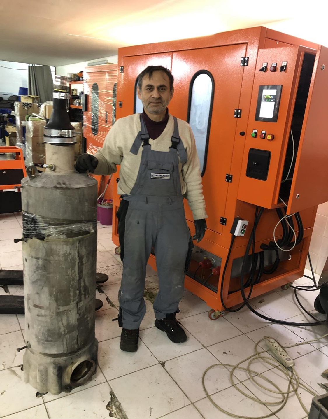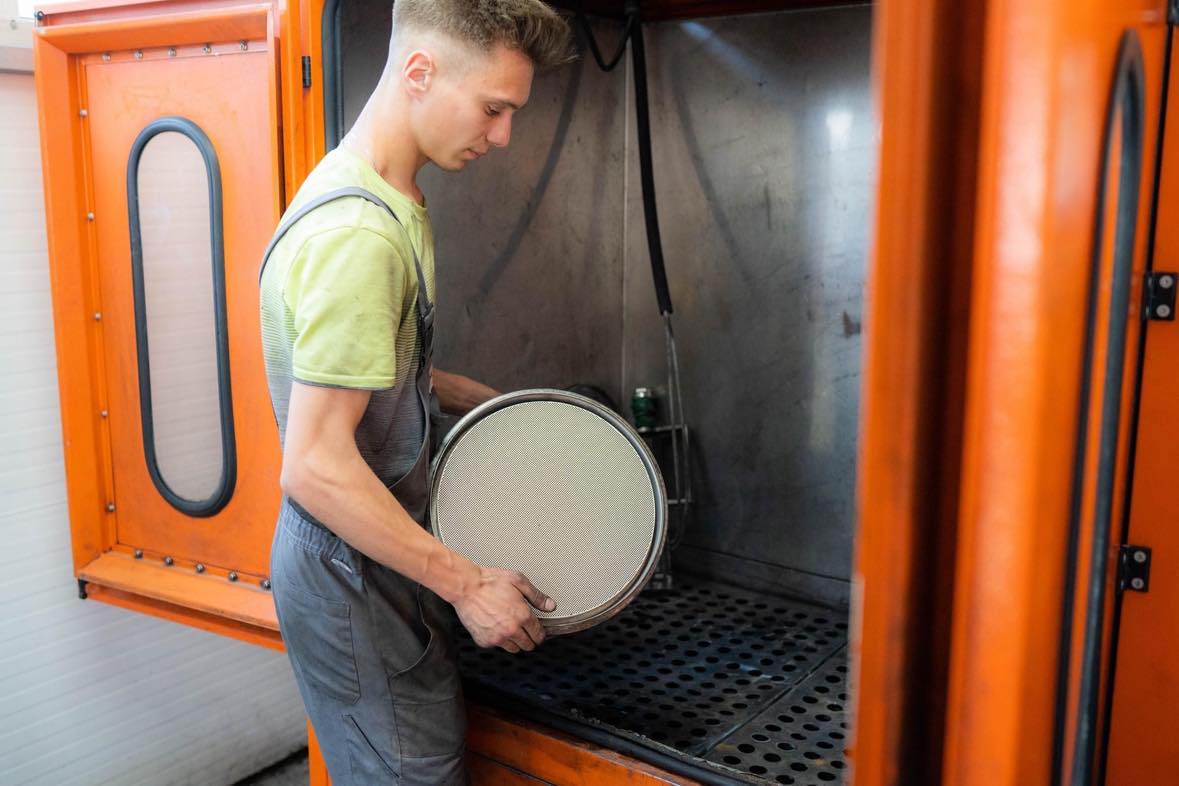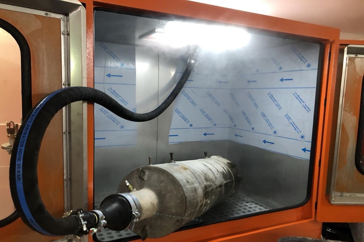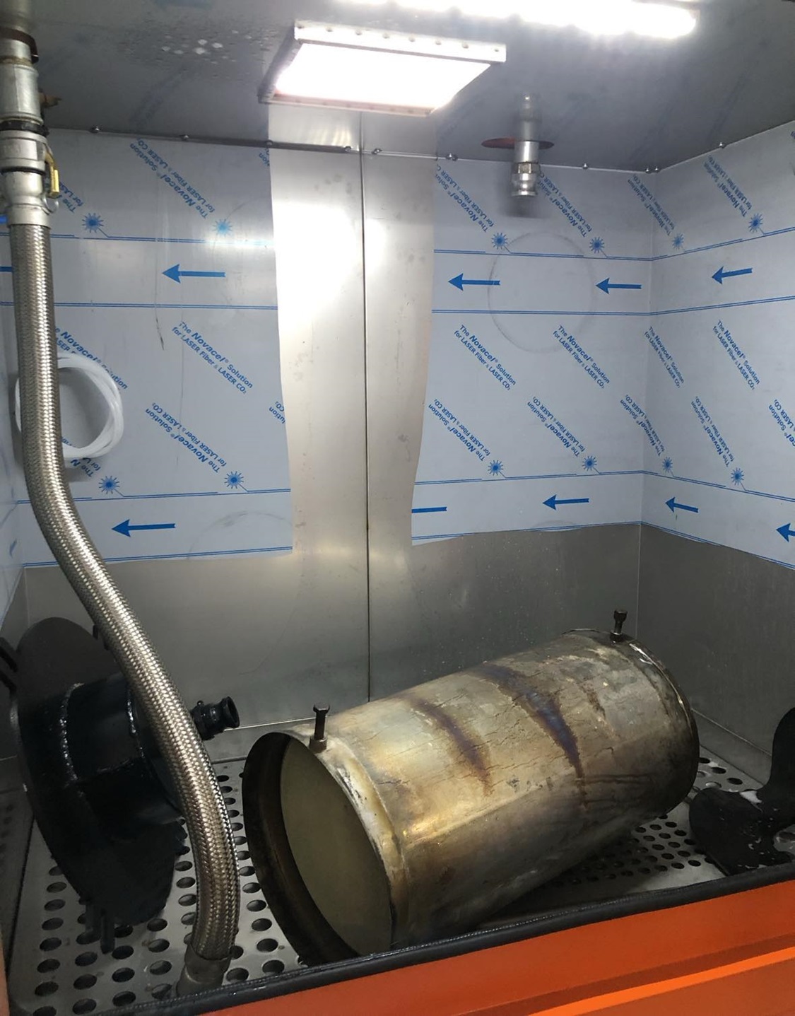 Con la limpieza neumática, se limpian las cenizas en el DPF y se prepara para el lavado hidrodinámico y catalítico. El tanque de choque de agua caliente y aire crea un efecto hidrodinámico. Puedes limpiar con agua caliente o fría. Nuestra empresa recomienda la limpieza con agua caliente a 50°C. Un mínimo de 15 toneladas de agua por hora es bombeada al DPF por su bomba especial, que completa fácilmente la limpieza del DPF.
