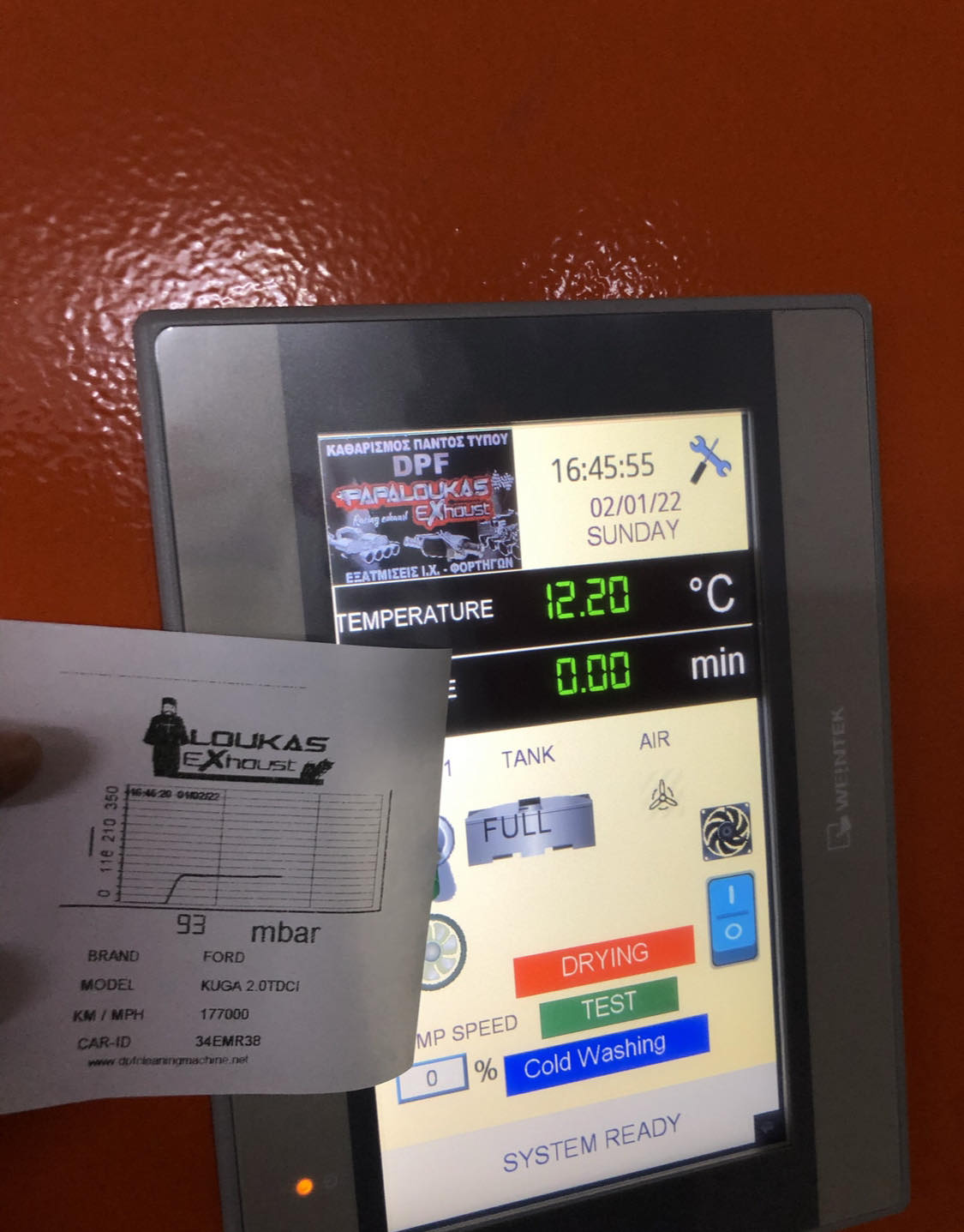 Con sus componentes especiales, nuestra máquina realiza pruebas de contrapresión del DPF y catalizador antes y después de la limpieza y las imprime con su propia impresora.